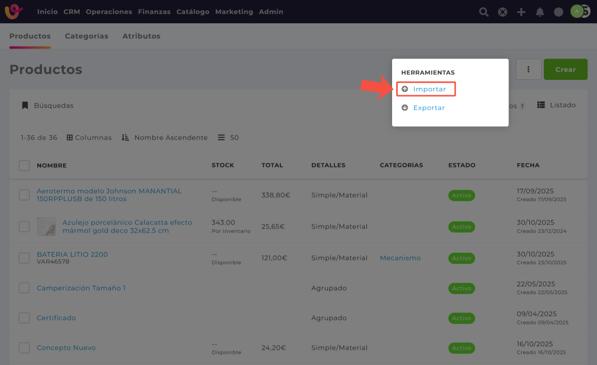 Entra en el apartado Catálogo → Productos, o haz clic directamente en este enlace: