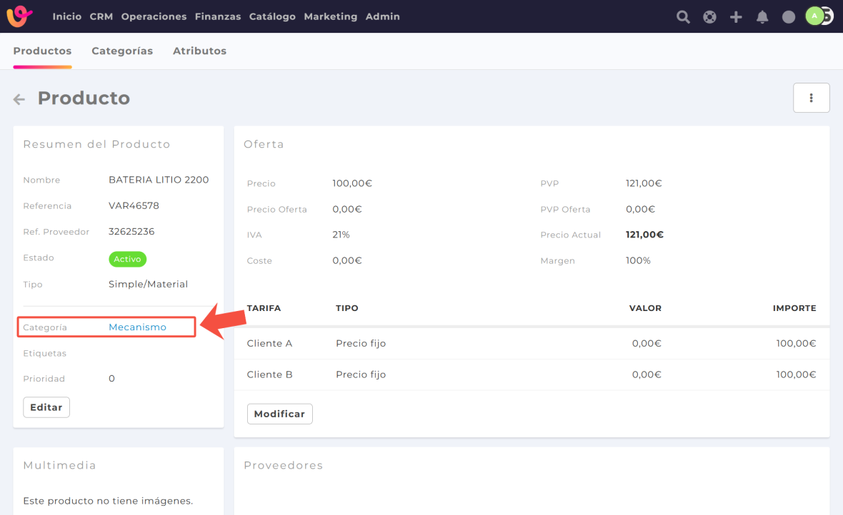 - Categorías: La categoría a la que pertenece el producto-- permite clasificarlo dentro del catálogo.