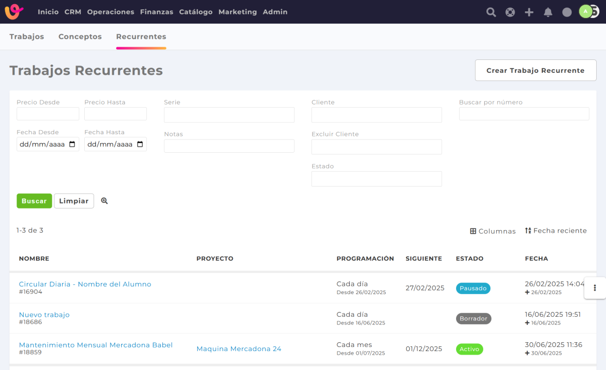 También puedes acceder directamente a la sección de trabajos recurrentes desde el siguiente enlace: