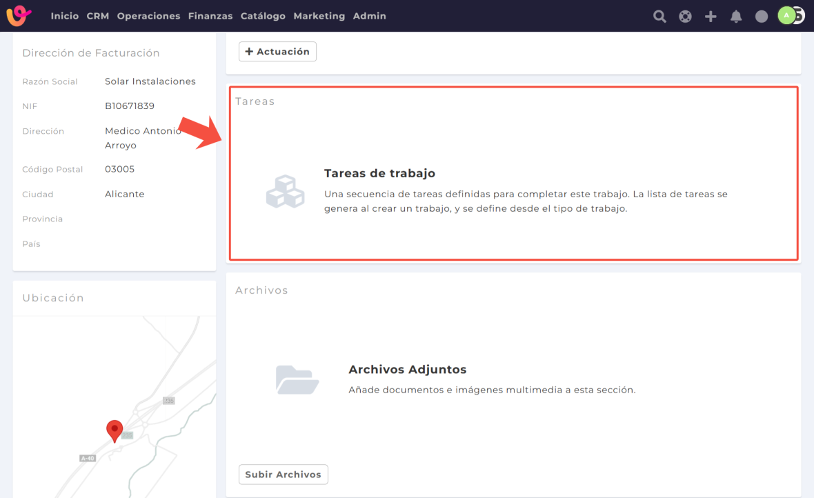 Puedes añadir la ubicación tanto al crear un nuevo trabajo como editando uno ya existente. Así, desde el propio trabajo o proyecto, todo el equipo tendrá acceso directo al lugar donde debe realizar su labor.