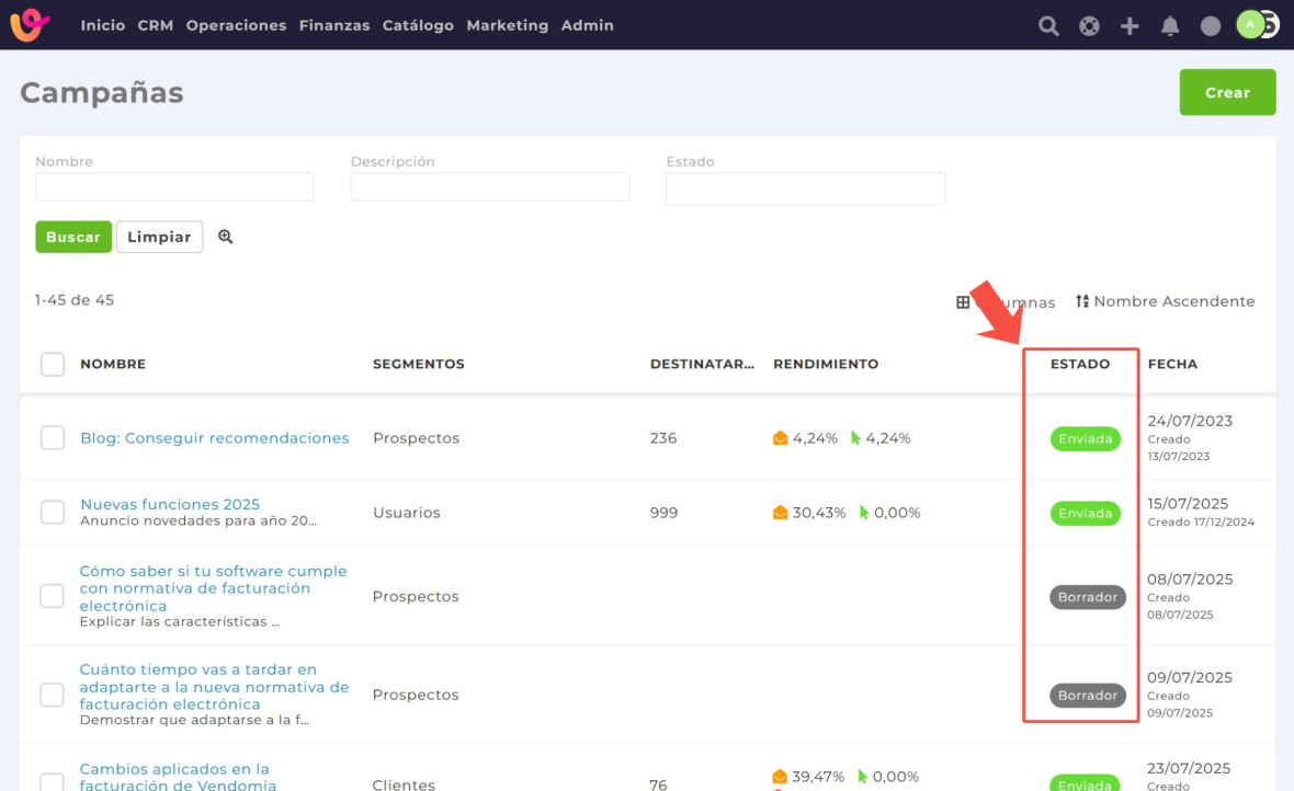 Estos estados te permiten saber en qué punto se encuentra cada campaña y gestionar de forma sencilla tus comunicaciones con los clientes.