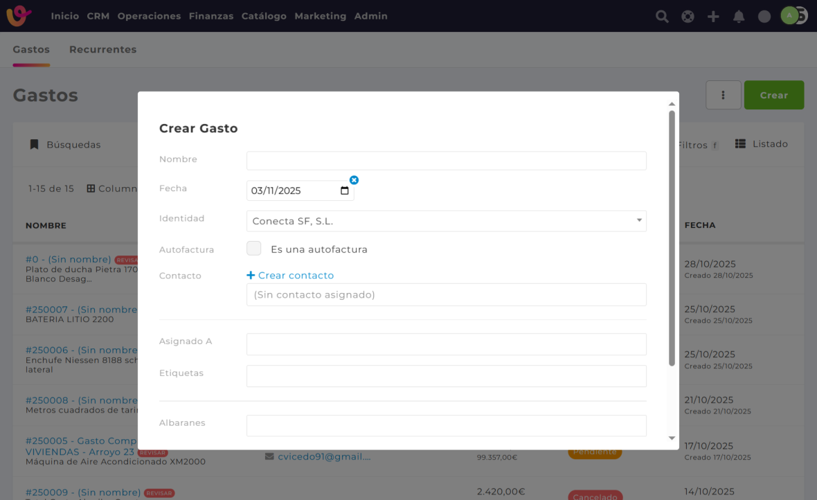 - Contacto: selecciona el proveedor o empresa con la que se ha generado el gasto.