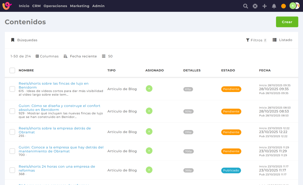 Estos estados son muy útiles para llevar un control claro y organizado de todo tu trabajo de marketing, especialmente si gestionas varios contenidos o colaboras con otras personas del equipo.