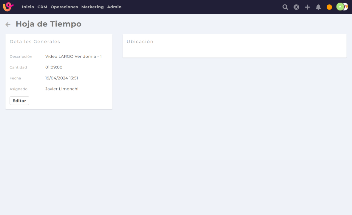 Todos los datos se registran en Escritorio -> Hojas de Tiempo y en la sección donde se haya adjuntado.