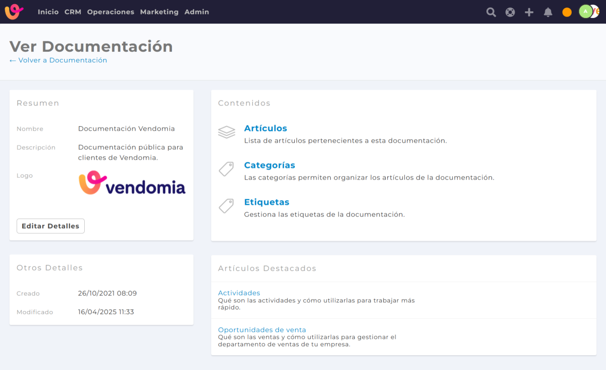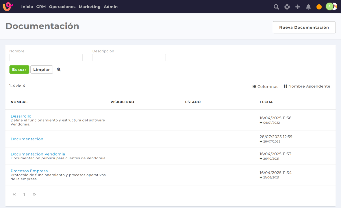 A través de esta función, puedes crear, almacenar y consultar documentos, procedimientos, guías internas, manuales o cualquier tipo de contenido informativo directamente dentro de Vendomia.